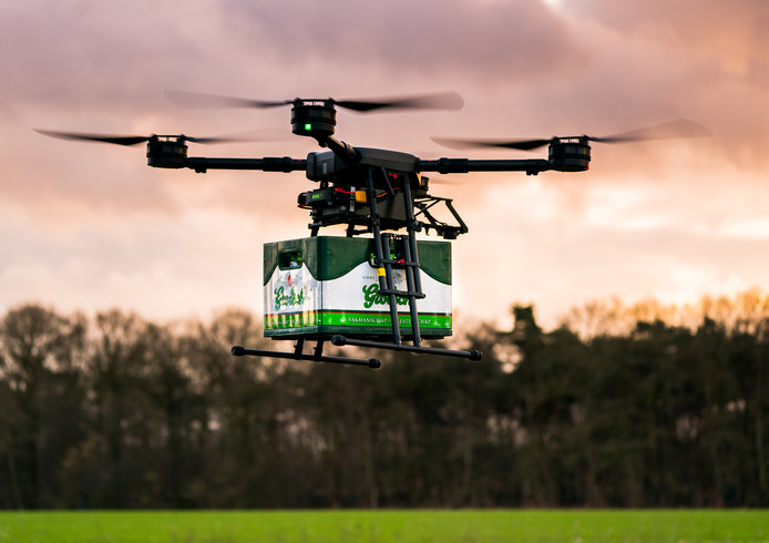 Beer Fridge With Drone - Beer and pizza. Beer fridge missing, but you get the idea ... / Drone are delivering mail, parcels, meals, medicine and parts.
